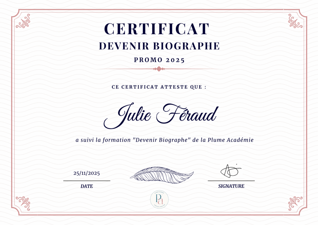 Pour apprendre le métier de biographe, développer mon savoir-faire et gagner en assurance, j’ai suivi la formation d’Anne-Sylvie.